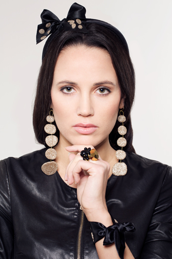Splash Composée de vinyle, cette collection est très largement influencée par le monde de l'art contemporain abstrait de Jackson Pollock et de Joan Mirò. Elle s'intitule en anglais « Éclaboussure » ou « Écume des vagues ». Entièrement réalisés à la main, parfois rehaussés de pierres et de cristaux précieux, ces colliers singuliers dégagent de l'énergie et de la joie de vivre ! Boucles d’oreilles tombantes ou en forme de soleil, des broches et sautoirs qui rappellent les douces courbes de galets, cette collection surprend. Photographer: Olivier Borgognon Model: Joan Yu |